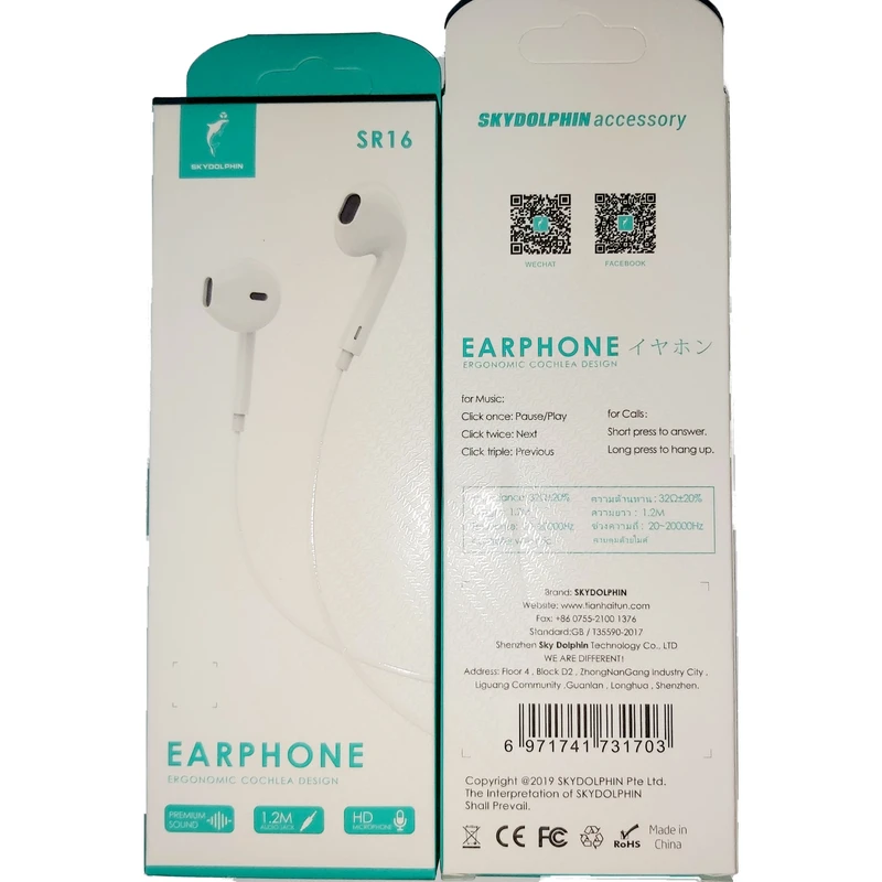 هدفون SR16 اسکای دلفین یک محصول با کیفیت و با طراحی ساده و در عین حال شکیل است که در دو رنگ ساده سفید ومشکی عرضه و تولید شده است.این هندزفری جذاب بسیار مناسب برای انجام کارهای روزمره و شنیدن موسیقی با کیفیت بالا است. طول سیم در این مدل 120 سانتیمتر است تا شما بتوانید هنگام گوش دادن به موسیقی آن را به راحتی در کیفدستی یا کوله پشتی بگذارید. طراحی گوشیها به صورت ارگونومیک و مطابق با حالت گوش بوده تا هنگام استفادههای طولانی راحت باشید و احساس خستگی نکنید و از گوش دادن به موسیقی لذت ببرید.هندزفری سیمدار SR16 از طریق جک 3.5 میلیمتری به گوشی متصل میشود، این جک دارای کارآیی بالا و رسانایی موجب کیفیت و دوام بیشتر آن میشود.