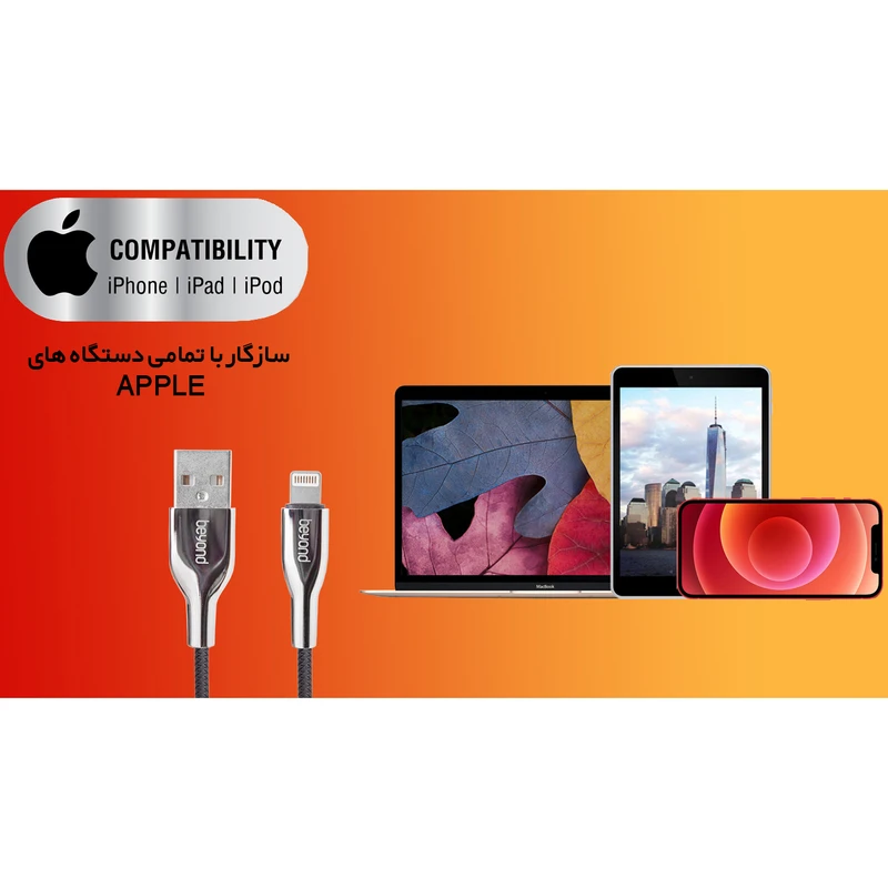 این کابل میتوانید تمام دستگاههایی که دارای ورودی Lightning هستند مانند iPhone، iPad، Airpods و دیگر دستگاههایی که دارای پورت Lightning دارند را شارژ کنید و یا با اتصال به کامپیوتر بین آنها به انتقال اطلاعات بپردازید.